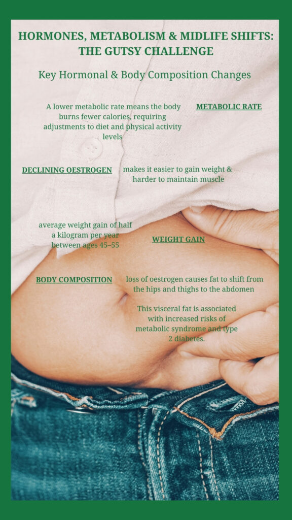 Hormonal Shifts: As oestrogen levels decline, the body experiences metabolic changes that make it easier to gain weight and harder to maintain muscle.